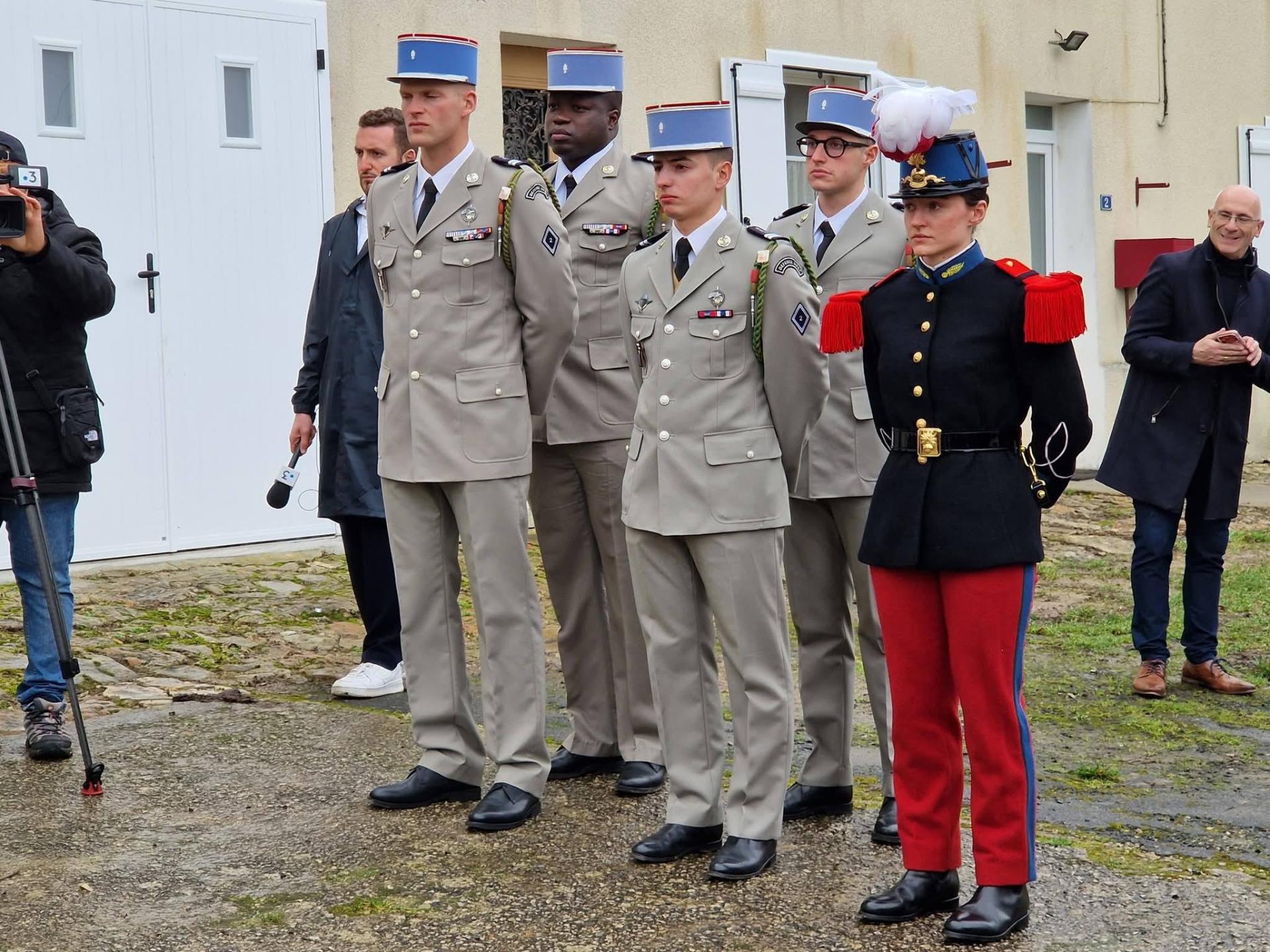 Puis tous furent invités par le maître de cérémonie, le Colonel (er) Henri CARON, à se rendre devant la tombe restaurée du Soldat MOITIE pour un rappel historique suivi d'un dépôt de gerbes au son d'une musique militaire Napoléonienne. A noter la présence du Chef de Corps du 2ème regiment de Dragons accompagné d'officiers venus honorer la Mémoire d'un ancien Soldat du régiment.